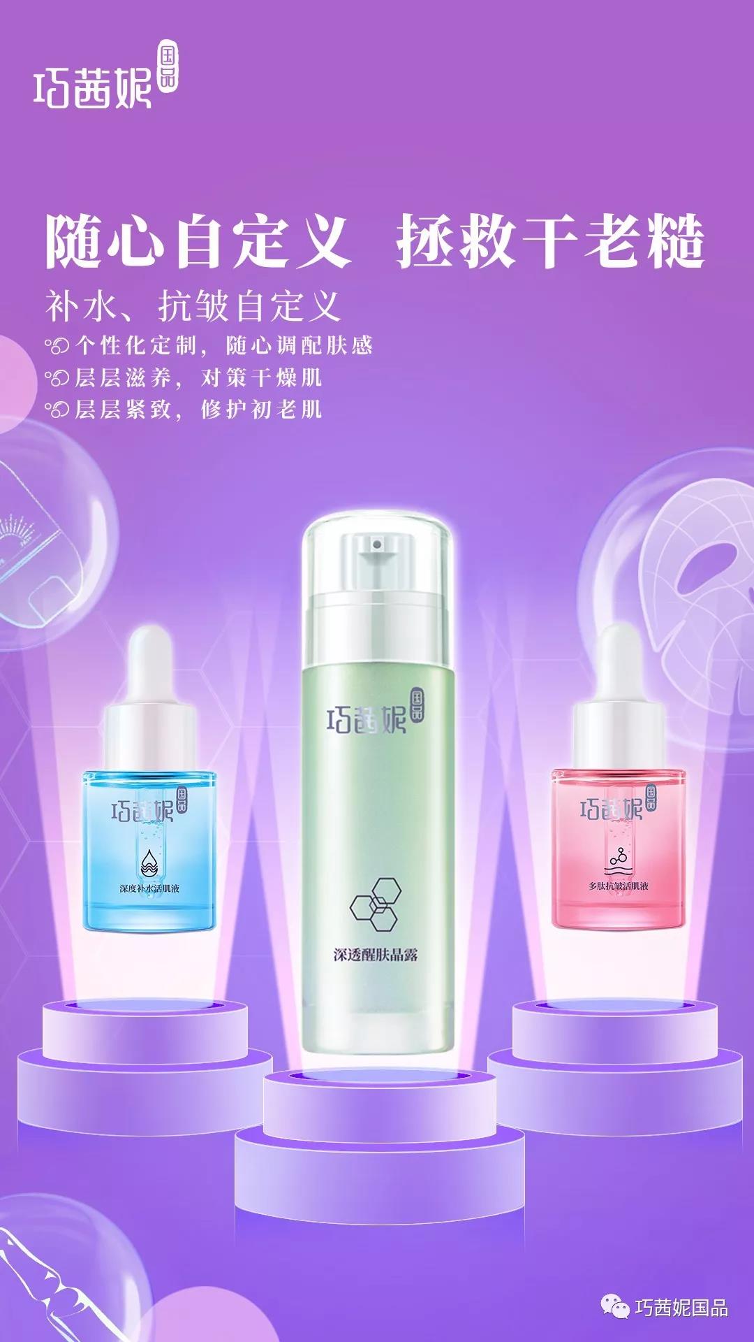 美容護膚品很重要,是很有必要的。巧茜妮國品補水、抗皺、祛黃、美白自定義護膚,全方位滿足愛美士們的需求。
