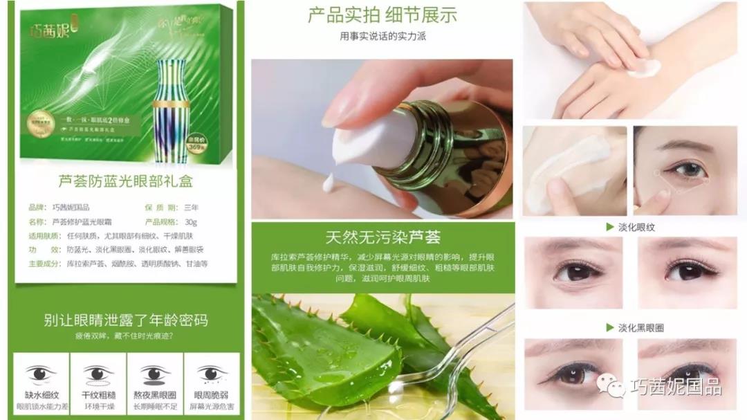 巧茜妮國(guó)品防藍(lán)光眼部禮盒里面的眼霜含有庫(kù)拉素蘆薈精華成份,以及防藍(lán)光因子,因此國(guó)品防藍(lán)光眼霜可以淡化黑眼圈、祛除眼部細(xì)紋、祛除眼袋、舒緩眼部疲勞以外,還可以防藍(lán)光。