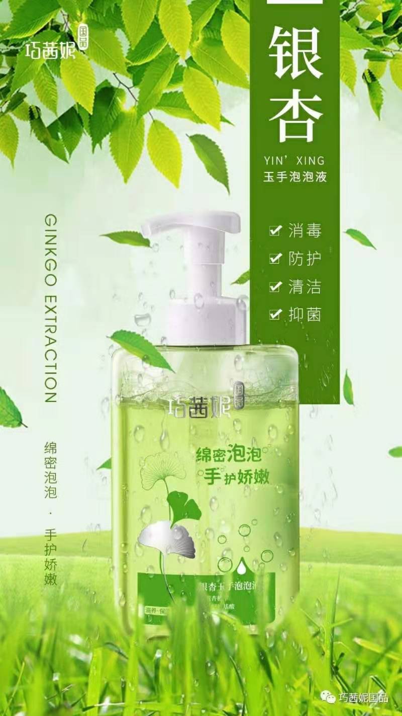巧茜妮國品銀杏泡泡洗手液,含銀杏植物萃取精華及抑菌因子,具有消毒、防護(hù)、殺菌、清潔、滋潤保濕等功效。
