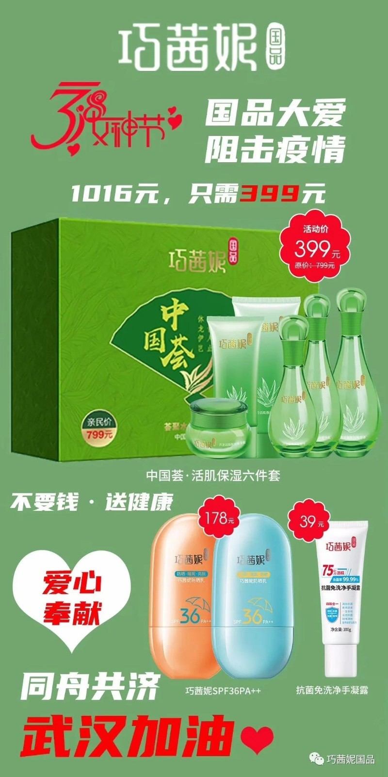 如果說男人如山,那女人如水,山有山的雄偉,水有水的柔媚,身為女人,我們有柔軟的身體,婀娜的體態,溫柔的談吐,秀美的容貌。相信每個女性都渴望自己成為女神,在3.8女神節即將到來之際,巧茜妮國品為了關愛國人健康,國品防曬乳及洗手液大放送……