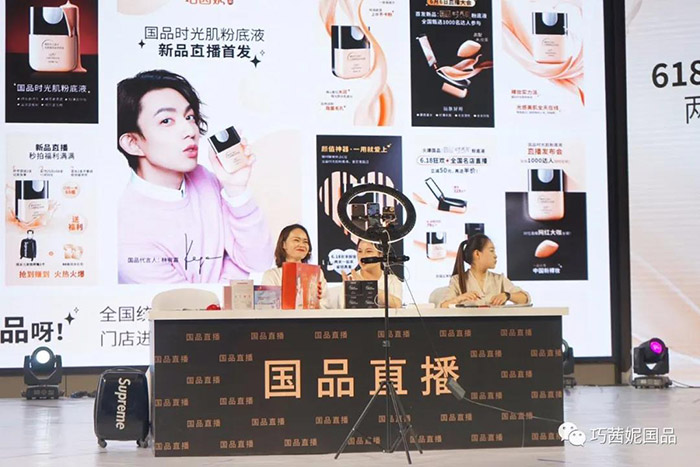 6月3日下午,發布了國品時光肌超級粉底液,由巧茜妮國品直播經理鄭璇燕及何素芳針對國品門店直播分享國品光時肌超級粉底液的賣點、銷售方案。巧茜妮國品將在6月15日建群預告、種草、在直播間派發福利、目標是1000萬消費者進入直播間、搶購國品時光肌超級粉底液。相信國品時光肌超級粉底液今年火爆銷售1000萬瓶不是夢!