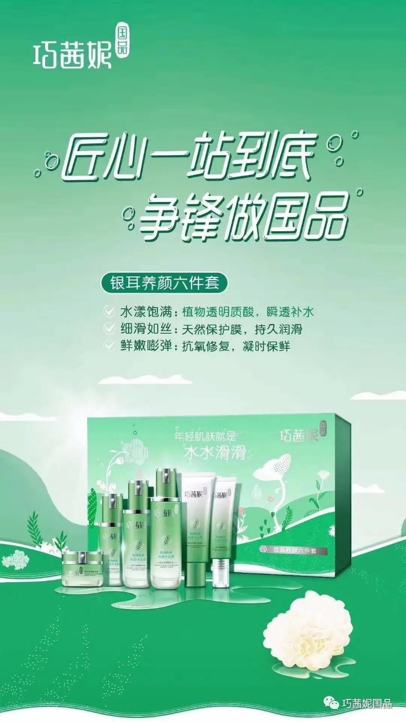 巧茜妮國品銀耳養顏六件套,全新升級配方,補水、鎖水、抗初老、緊致肌膚、抗氧修護,讓肌膚水潤緊致有彈性。