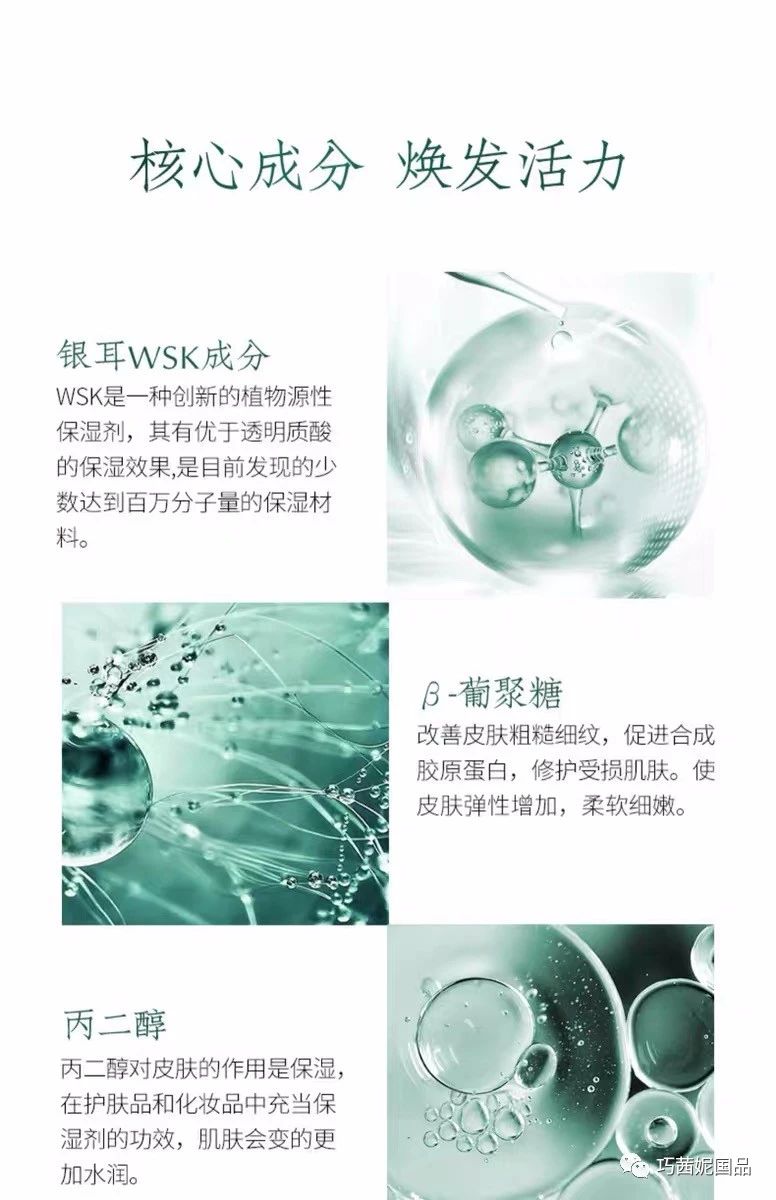 這段時間很多小仙女們反饋臉癢,注意了單純的癢就是缺水啦!皮膚缺水才會癢!一定要注意補水!再不補水就會脫皮、長斑、長皺、毛孔粗大、發黃等等會出現一系列問題!當然不是一天兩天的事!但是要注意啦!已經發信號啦!好皮膚是先天加后天保養!簡單的事重復做,重復的事認真做哈!皮膚缺水建議用巧茜妮國品銀耳養顏系列。