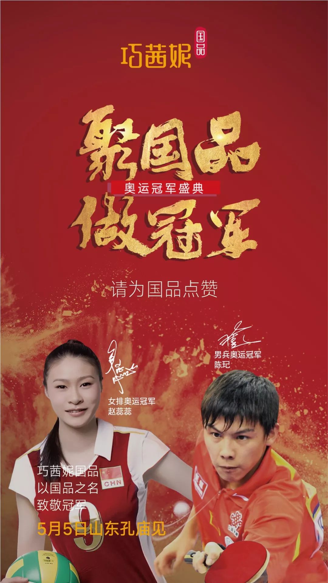 “聚國品做冠軍”,向奧運冠軍致敬,為巧茜妮國品喝彩!奧運冠軍是中國的驕傲,巧茜妮國品是中國的榮燿,奧運元年,巧茜妮國品攜手奧運冠軍一起領跑國品新時代!
