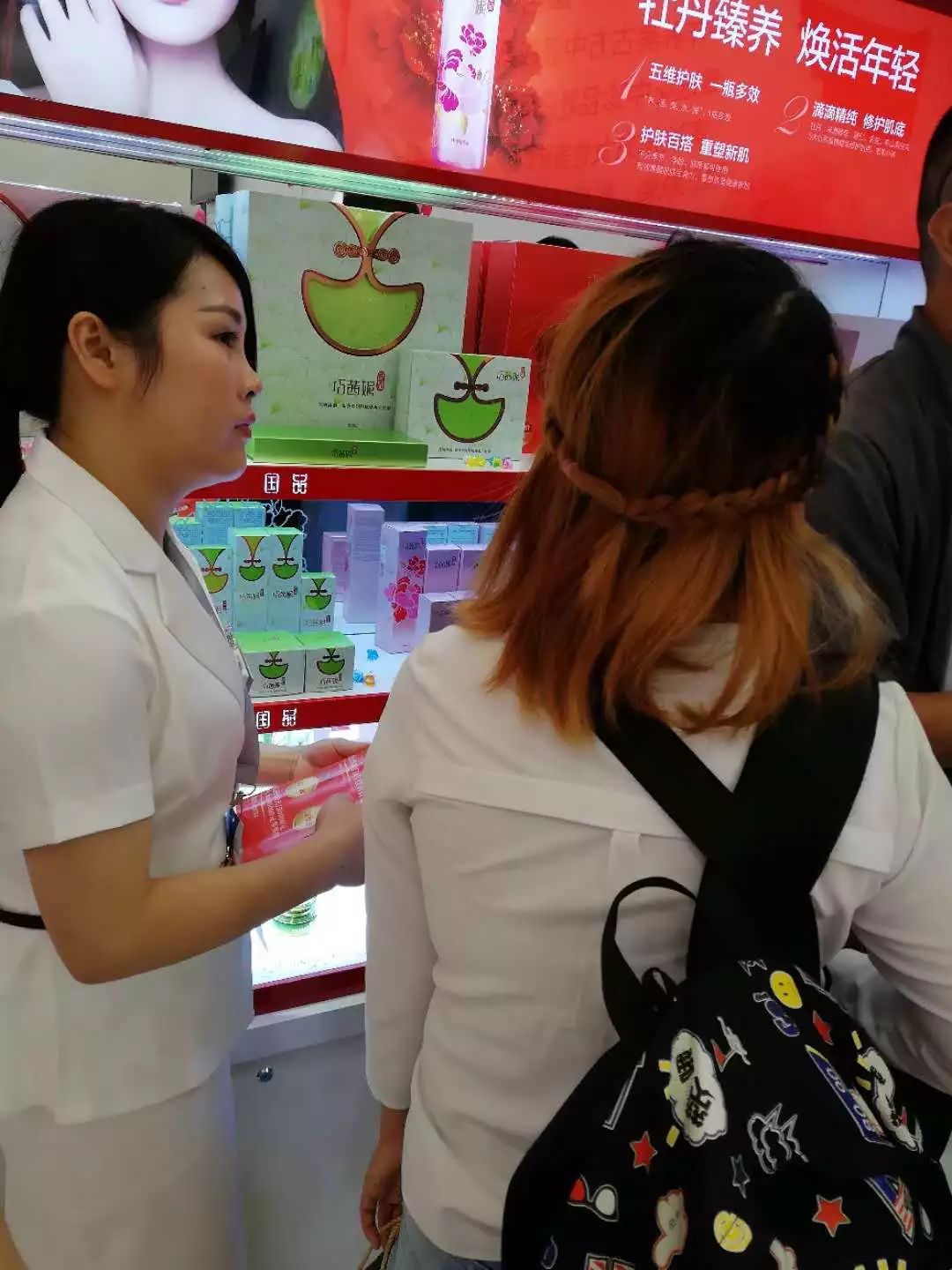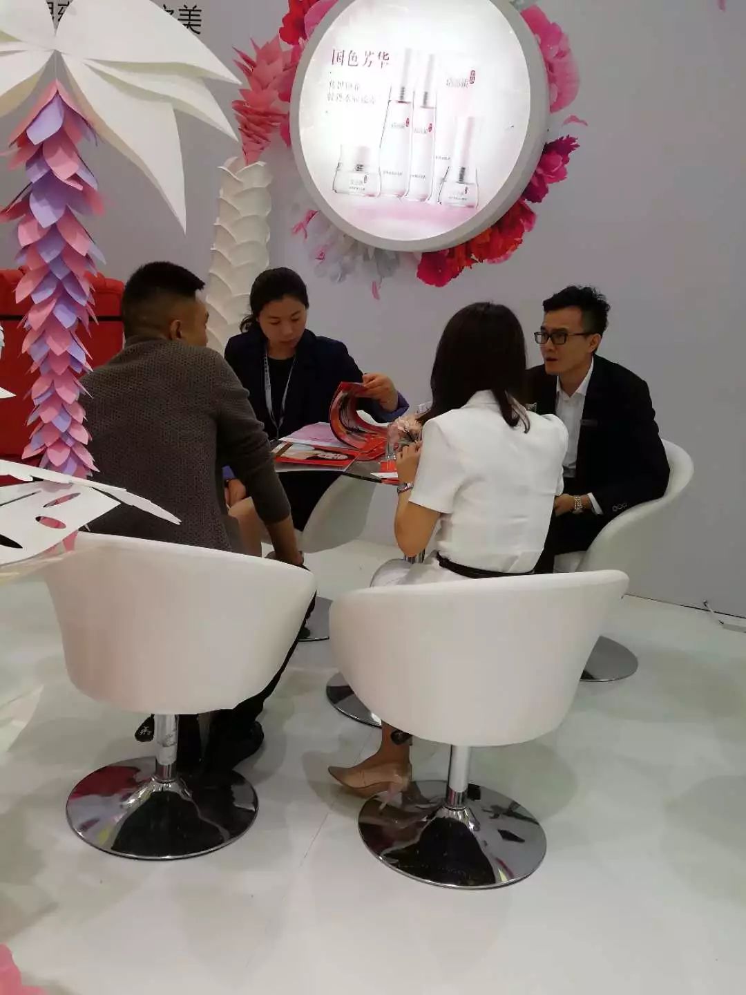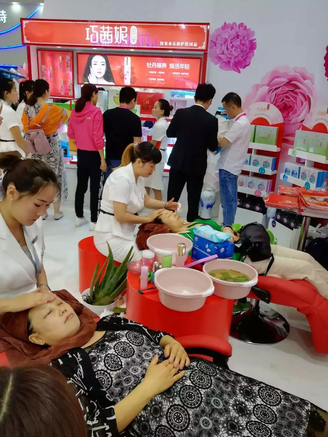 本次展會上,巧茜妮國品吸引了全國各地代理商、百強日化連鎖店老板參觀及資詢,巧茜妮國品培訓(xùn)經(jīng)理、培訓(xùn)講師正在對現(xiàn)場客戶做產(chǎn)品解講,為客戶做產(chǎn)品體驗及蘆薈灌膚體驗。