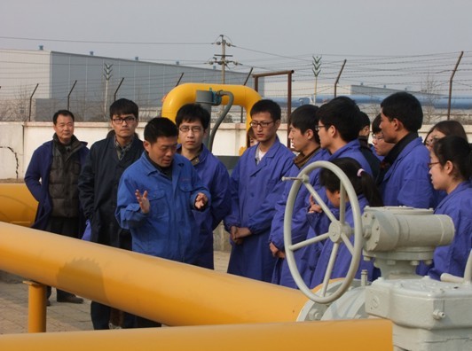 隨后,大學生們對《城鎮燃氣管理條例》、《焦作中裕天然氣發展簡況及站場工藝操作流程介紹》、《燃氣管道工程設計編寫介紹》進行了集中學習,并就這些課題分別與焦作中裕安全監察部王洋、小尚門站站長尚國華、技術設備部部長李寶慶進行了交流和探討。