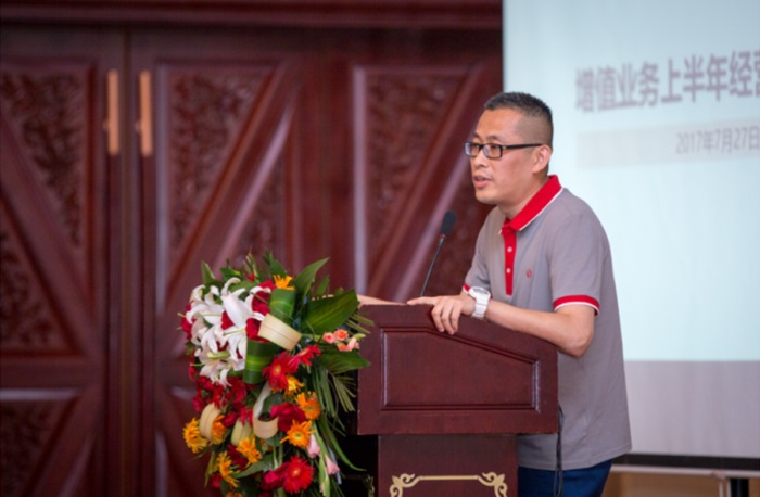 市場客服部副總經(jīng)理湯萌做《增值業(yè)務半年分析報告》