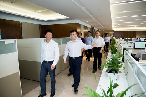 云投集團(tuán)黨委副書(shū)記、副董事長(zhǎng)兼總裁劉勇一行在中裕燃?xì)舛戮种飨跷牧恋呐阃聟⒂^中裕燃?xì)饧瘓F(tuán)本部
