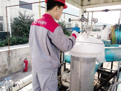 滎密路加氣站員工檢查設備